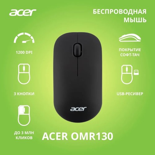Мышь беспроводная Acer OMR130 [ZL.MCEEE.00F] в компактном черном корпусе с матовым покрытием SoftTouch является удобным решением для ноутбука или ПК. За счет USB-ресивера, беспроводная связь с которым поддерживается на расстоянии до 10 м, устройство пр